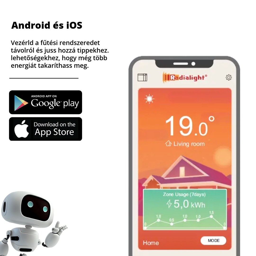 A Radialight KYOTO a távoli elérésben is különbözik a hagyományos fűtőpanelektől. A wifi modul cserélhető, 1-2 perc alatt okosíthatjuk fel a készüléket.